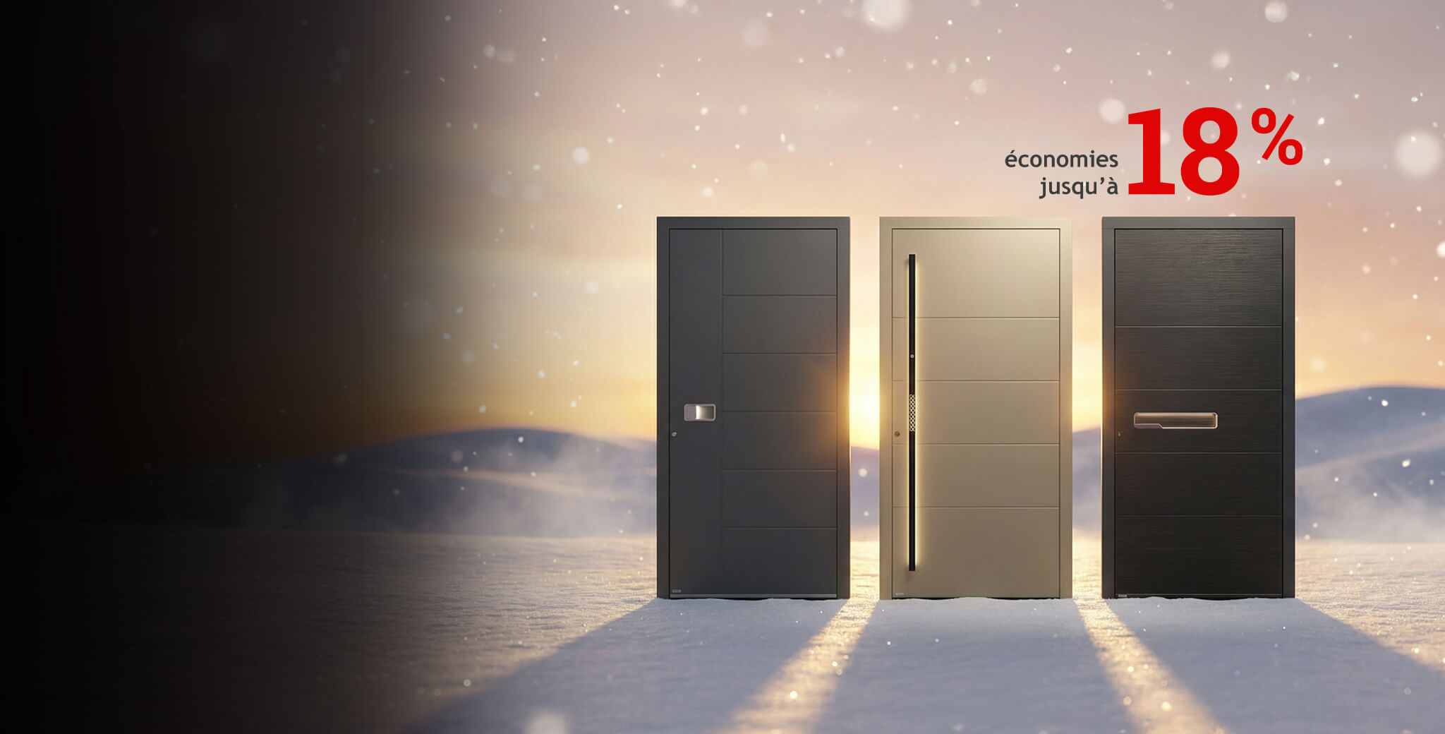 Profitez de l’offre hivernale la plus attractive et offrez-vous des portes d’entrée ALU haut de gamme de nos gammes Premium et Atrium à un prix exceptionnel.